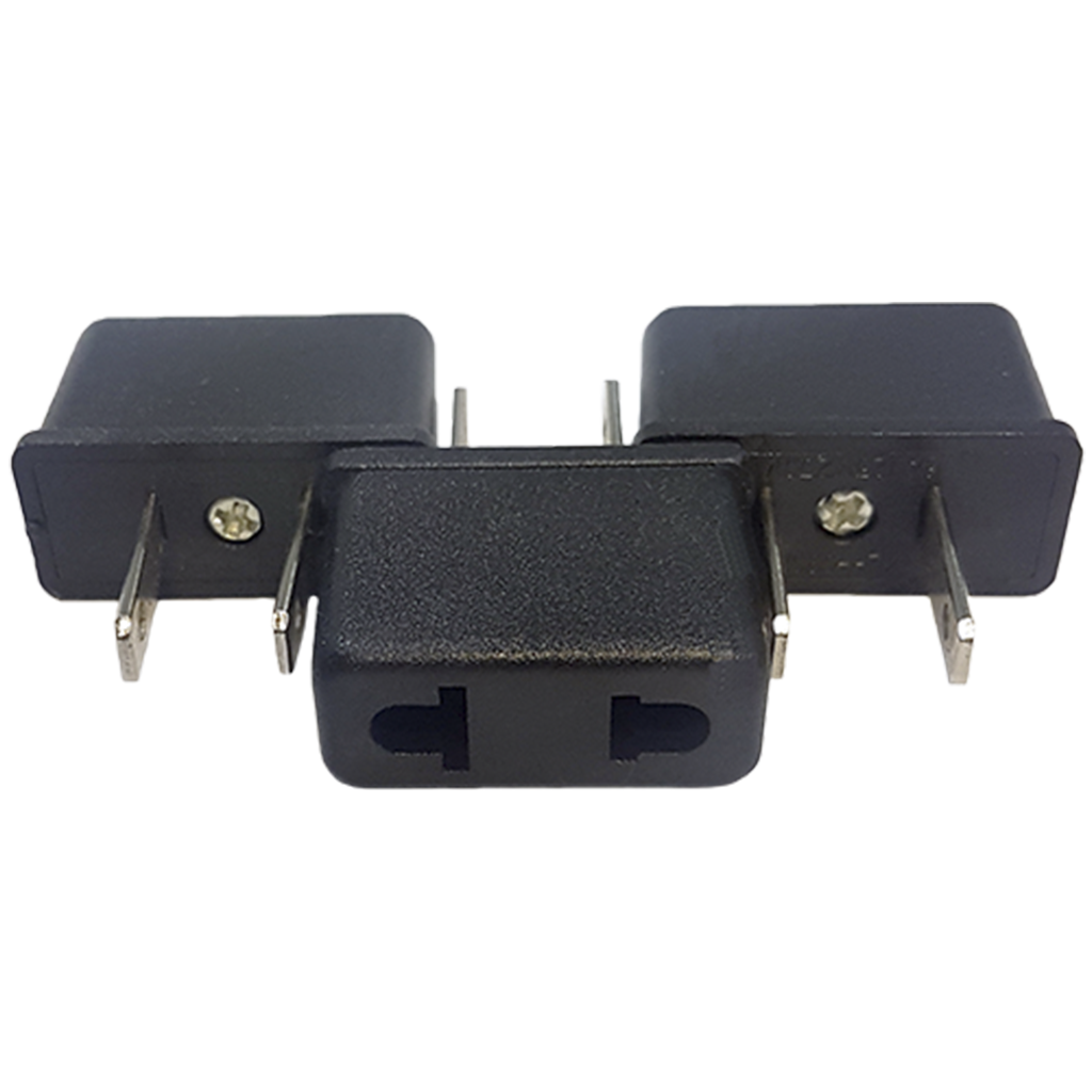 Un adaptador de enchufe de salida de Europa a América (dos puntas), diseñado para su uso con el cargador de pared.